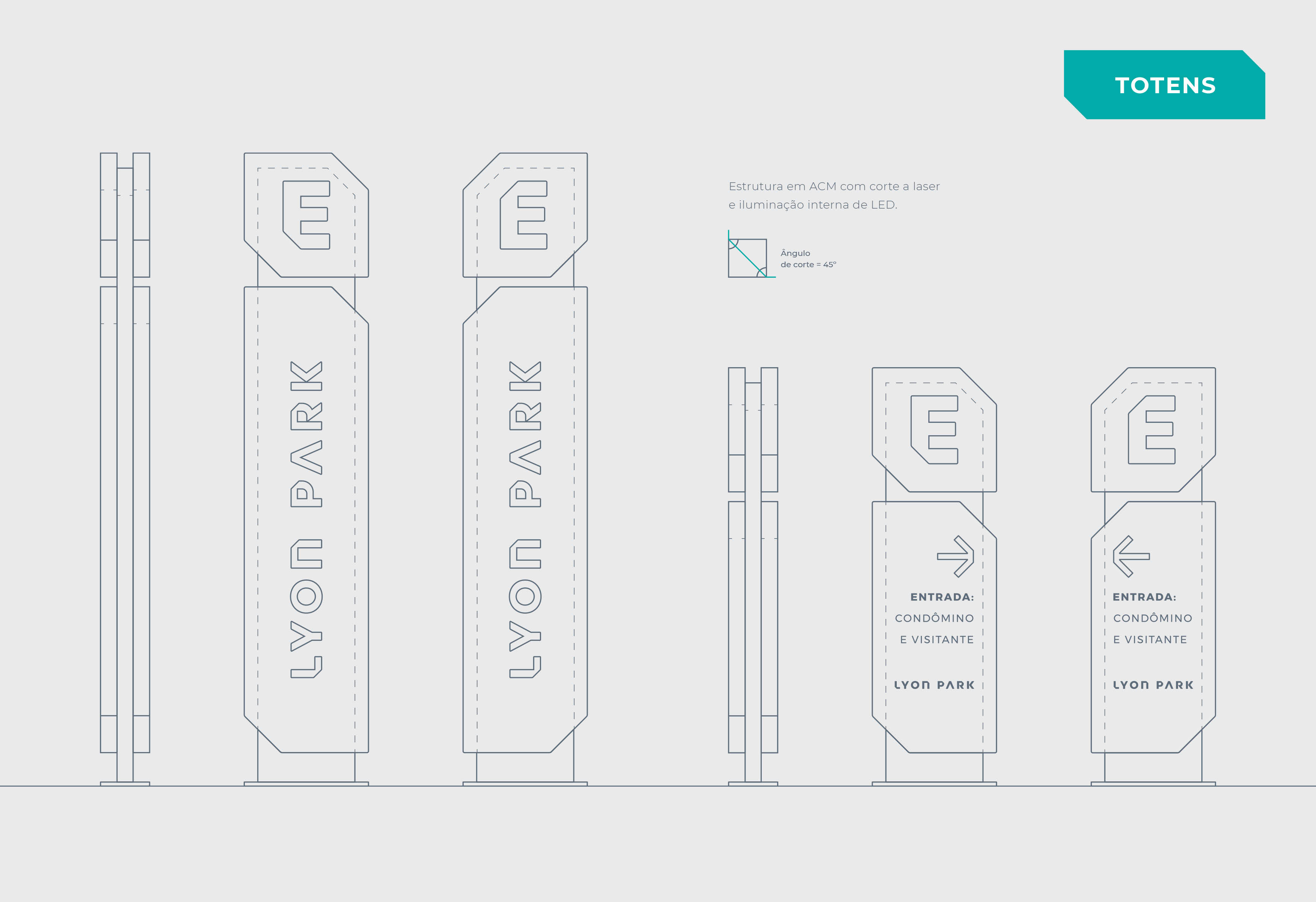 | Resumo do Desafio e da Solução: A Lyon Park é uma rede de estacionamentos de Porto Alegre que necessitava de um conceito que unificasse marca e sinalização, solidificando a identidade da rede. Como solução, criou-se um detalhe funcional para a marca, o qual repercute de modo condizente e contemporâneo em toda a sinalização do estacionamento, inclusive na sua arquitetura, contemplando desde peças maiores como totens e colunas até peças menores como placas e adesivos. |