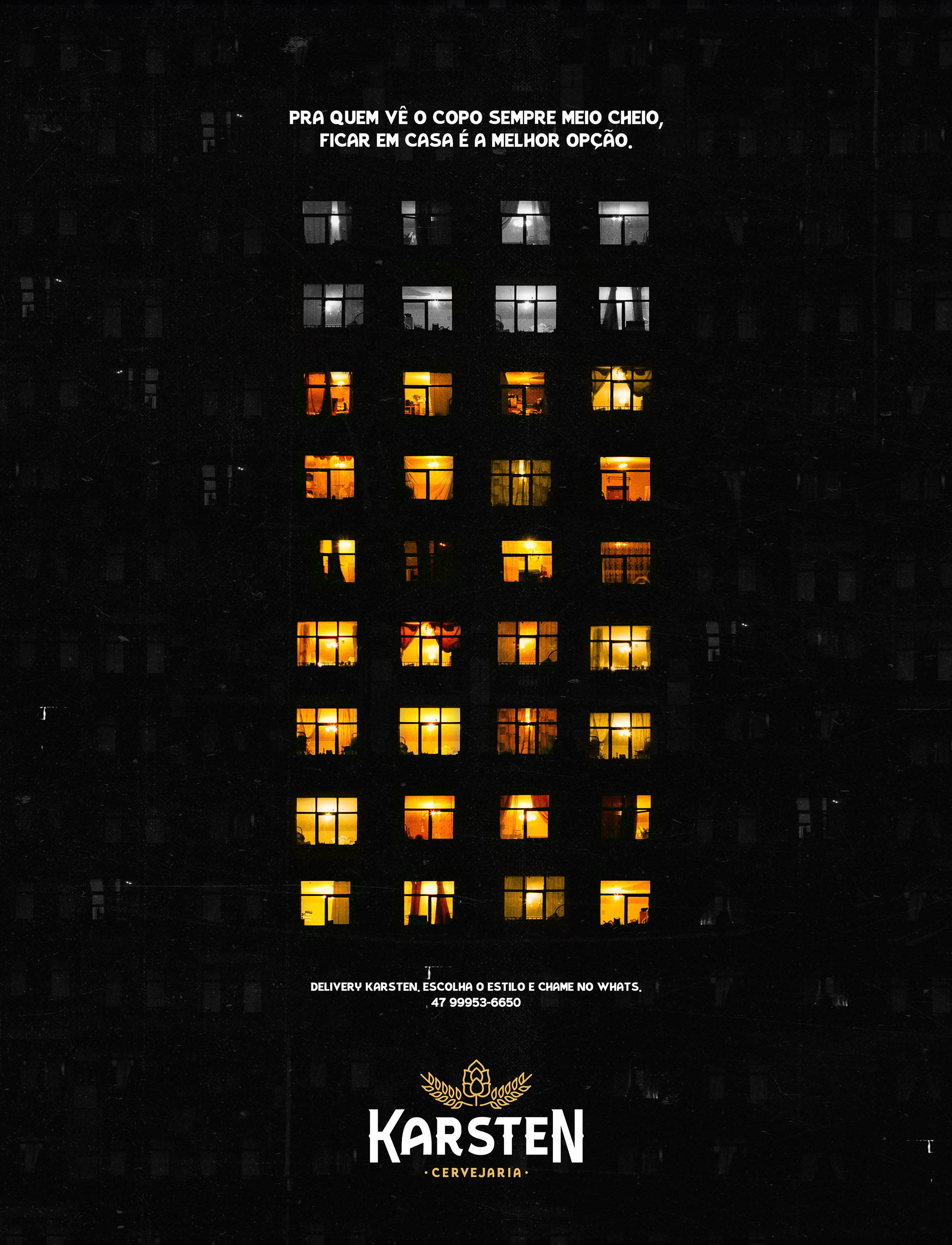 | Resumo do Desafio e da Solução: A Karsten é uma cervejaria artesanal que sofreu demais com a pandemia. Para manter suas portas abertas, a marca investiu no delivery e o nosso desafio foi de utilizar pouca verba para se destacar e comunicar o serviço de entrega. Enquanto muitas marcas tiraram a comunicação dos veículos de massa, colocamos a Karsten no principal jornal da cidade com uma peça que falava sobre o otimismo em meio a um período tão difícil. |