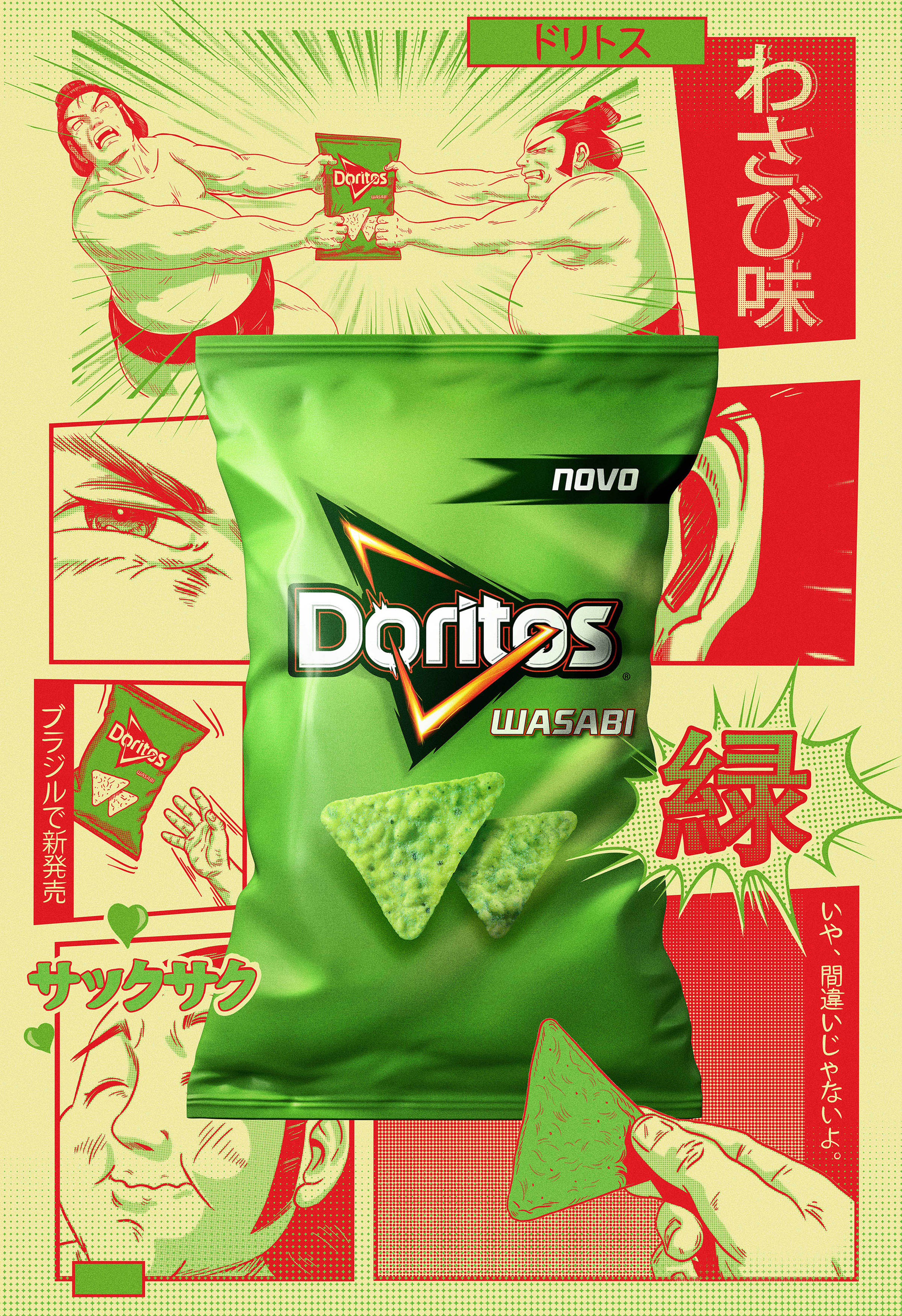| Resumo do Desafio e da Solução: Doritos estava lançando um novo sabor limitado no mercado brasileiro: Doritos Wasabi. Um movimento corajoso, de uma marca corajosa, estava pedindo por uma campanha tão corajosa quanto.Em um país que fala português, produzimos e veiculamos uma campanha inteira em japonês. Com inspiração nas artes e na cultura japonesa, trouxemos um pouquinho do Japão para as ruas do Brasil na forma de pôsteres meticulosamente trabalhados. |