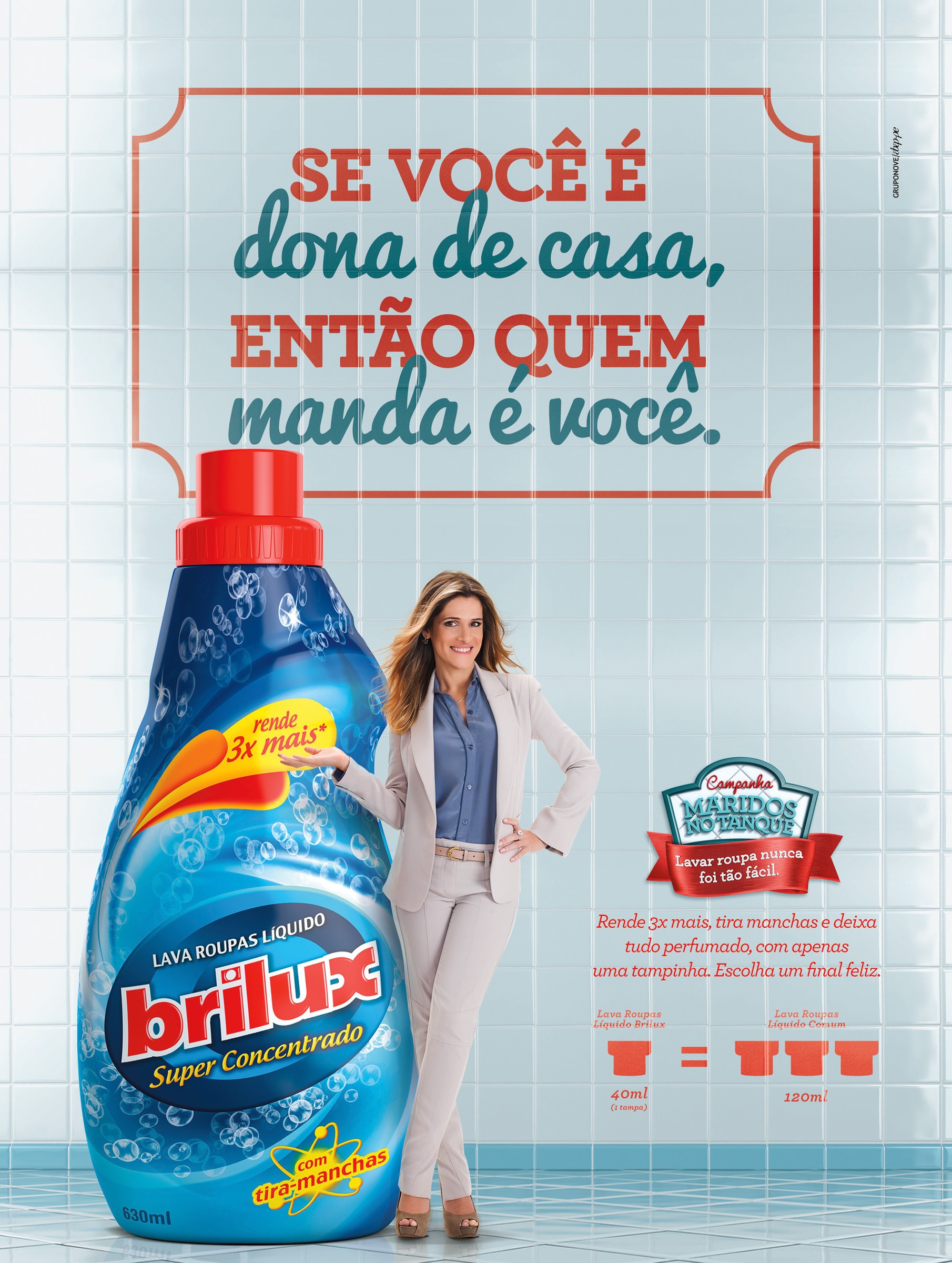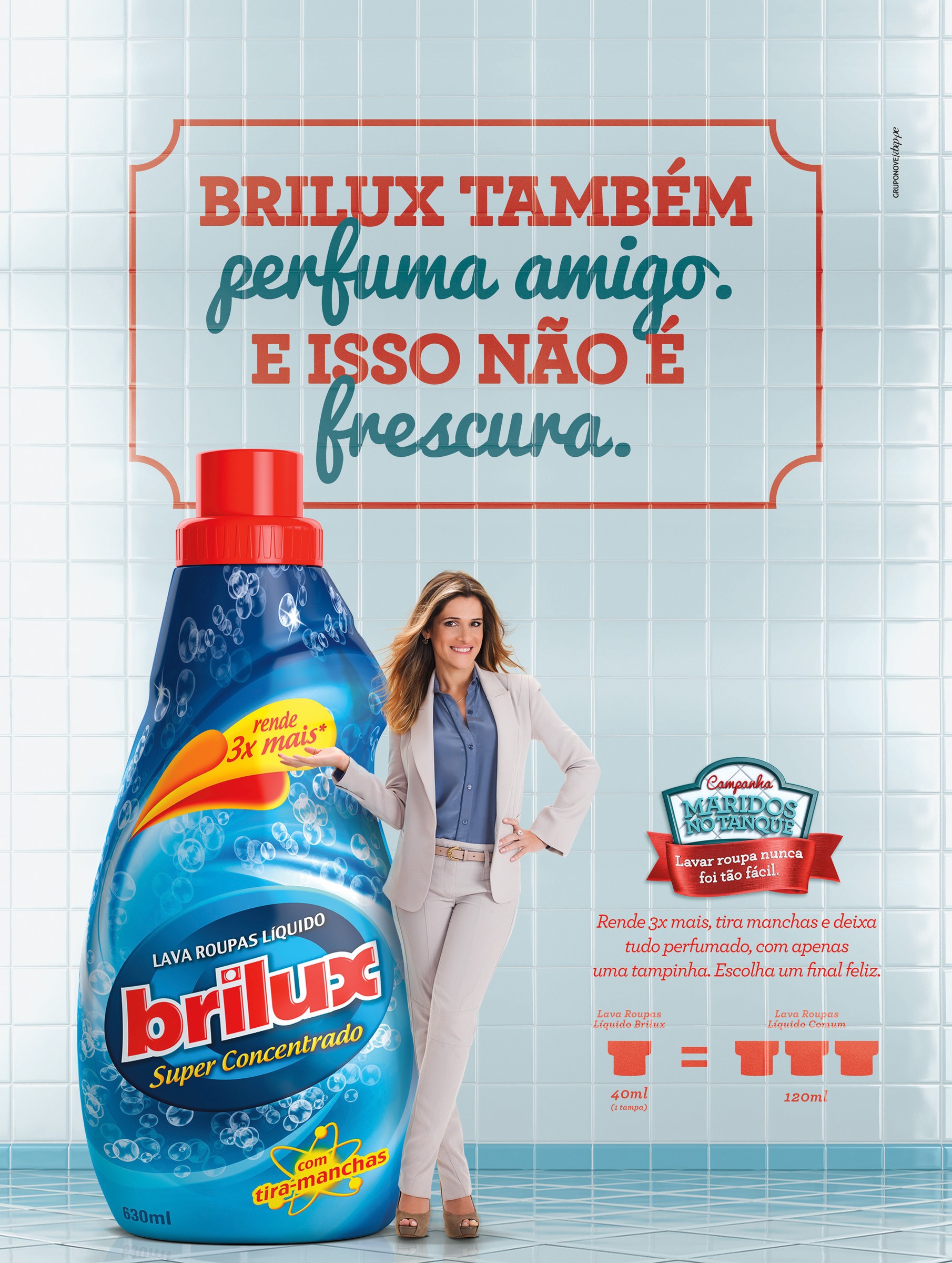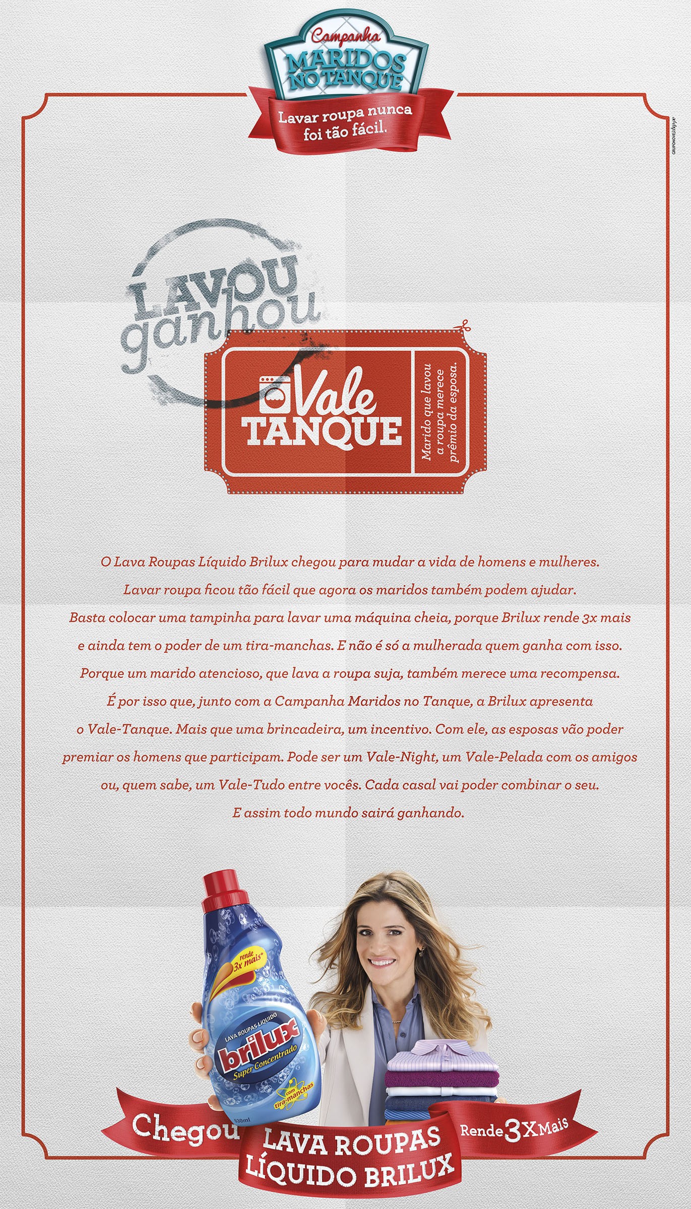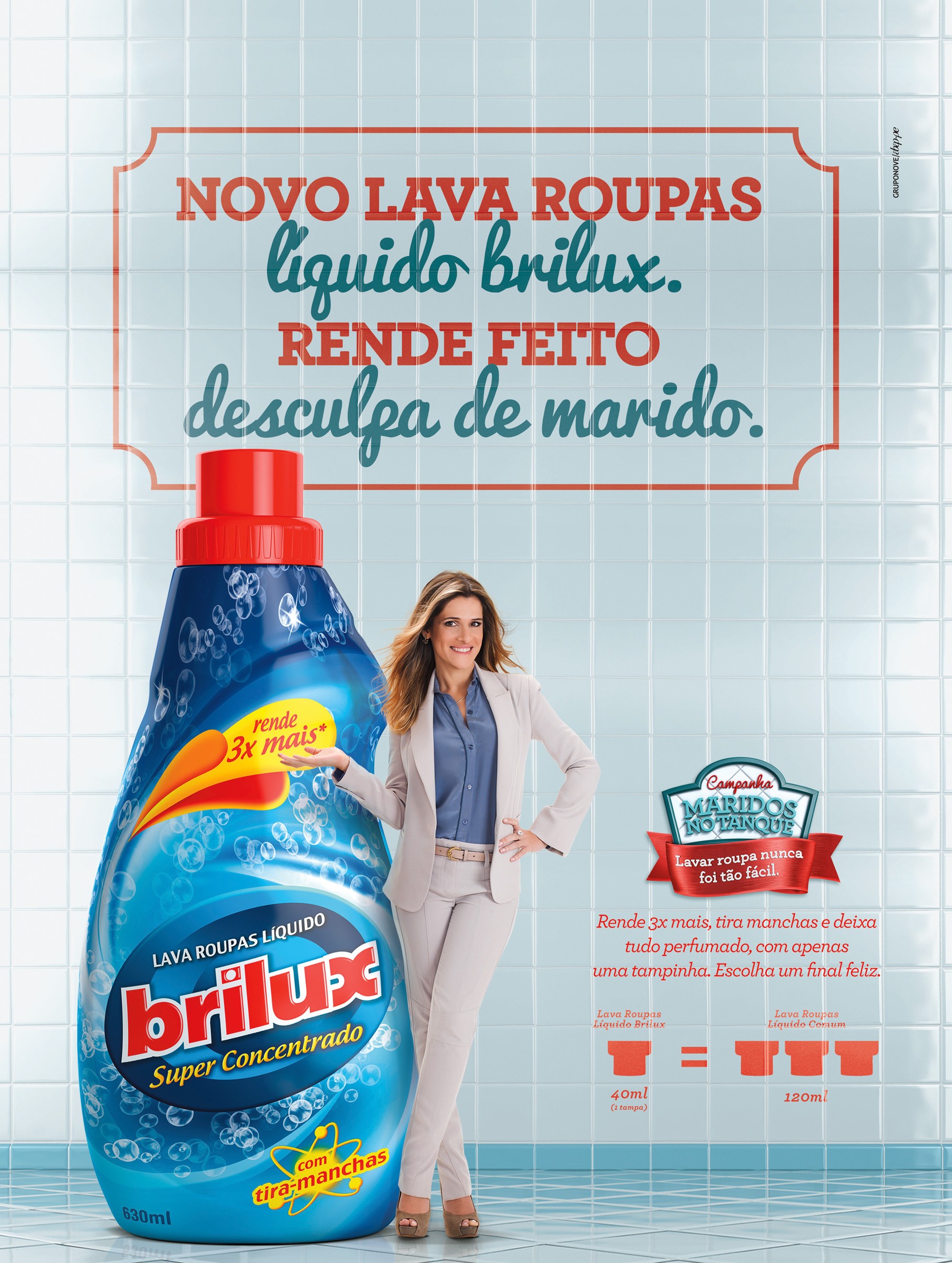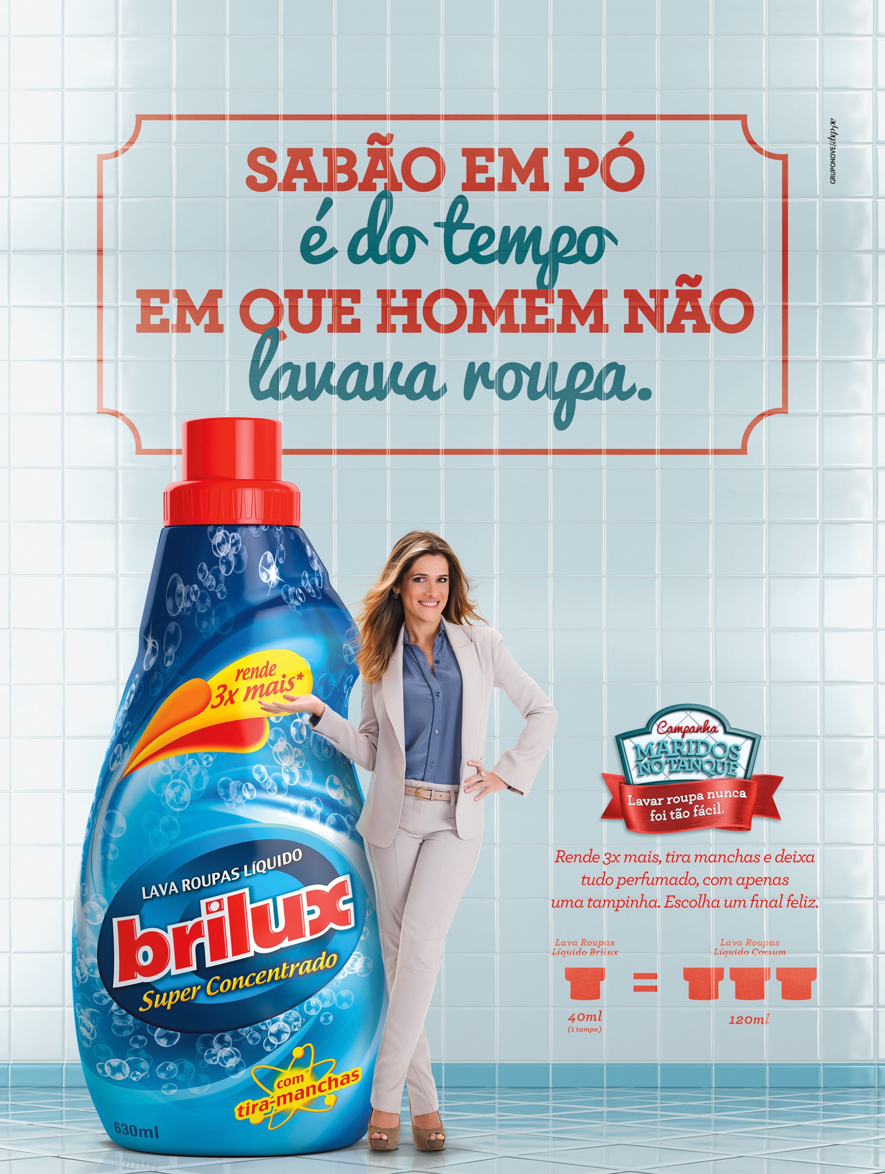 "Lava Roupas Líquido Brilux - Maridos No Tanque", da GRUPONOVE para Indústrias Reunidas Raymundo da Fonte.