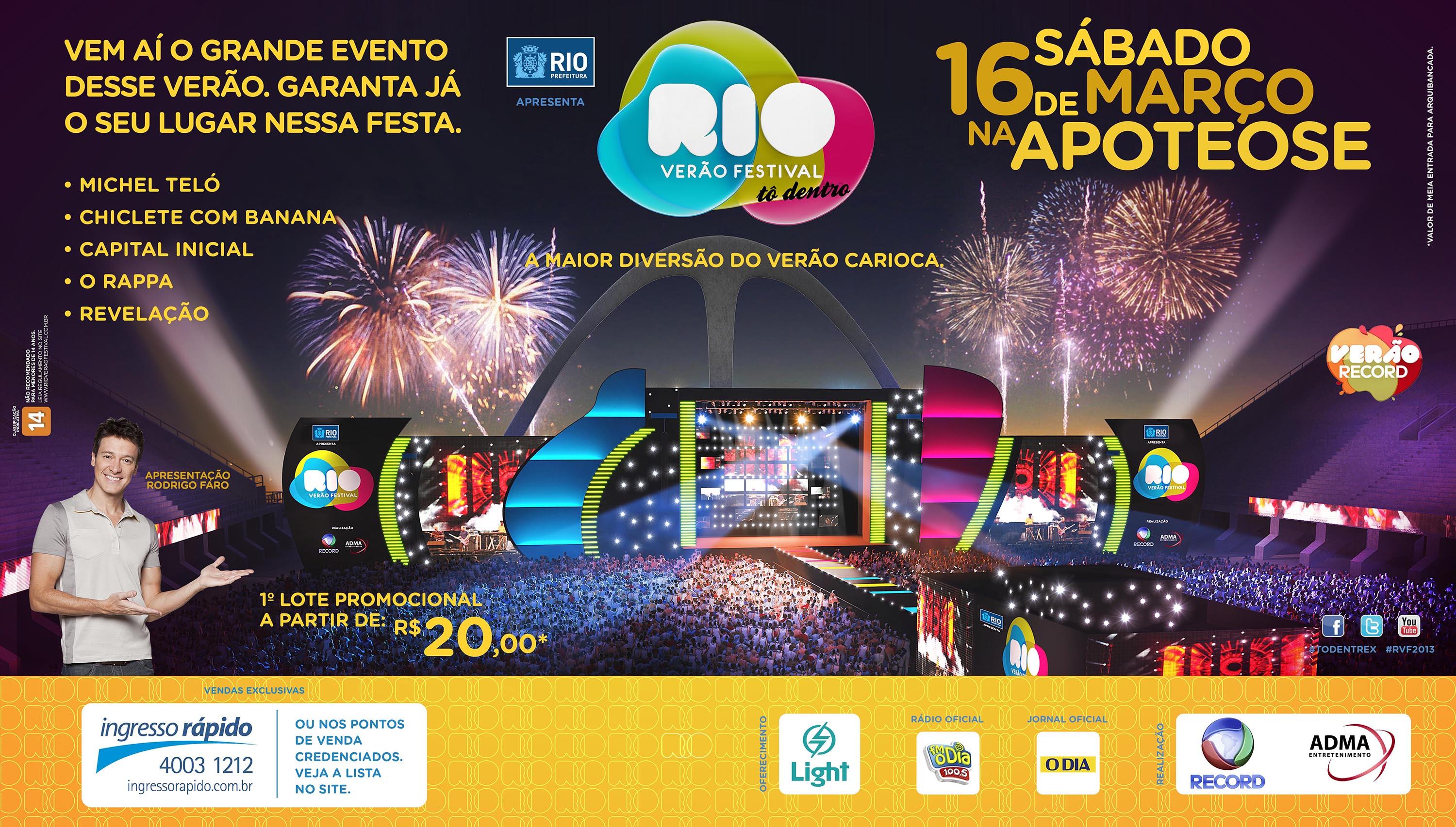 "Rio Verão Festival 2013", da ADMA ENTRETENIMENTO e Record Rio para Evento Proprietário.