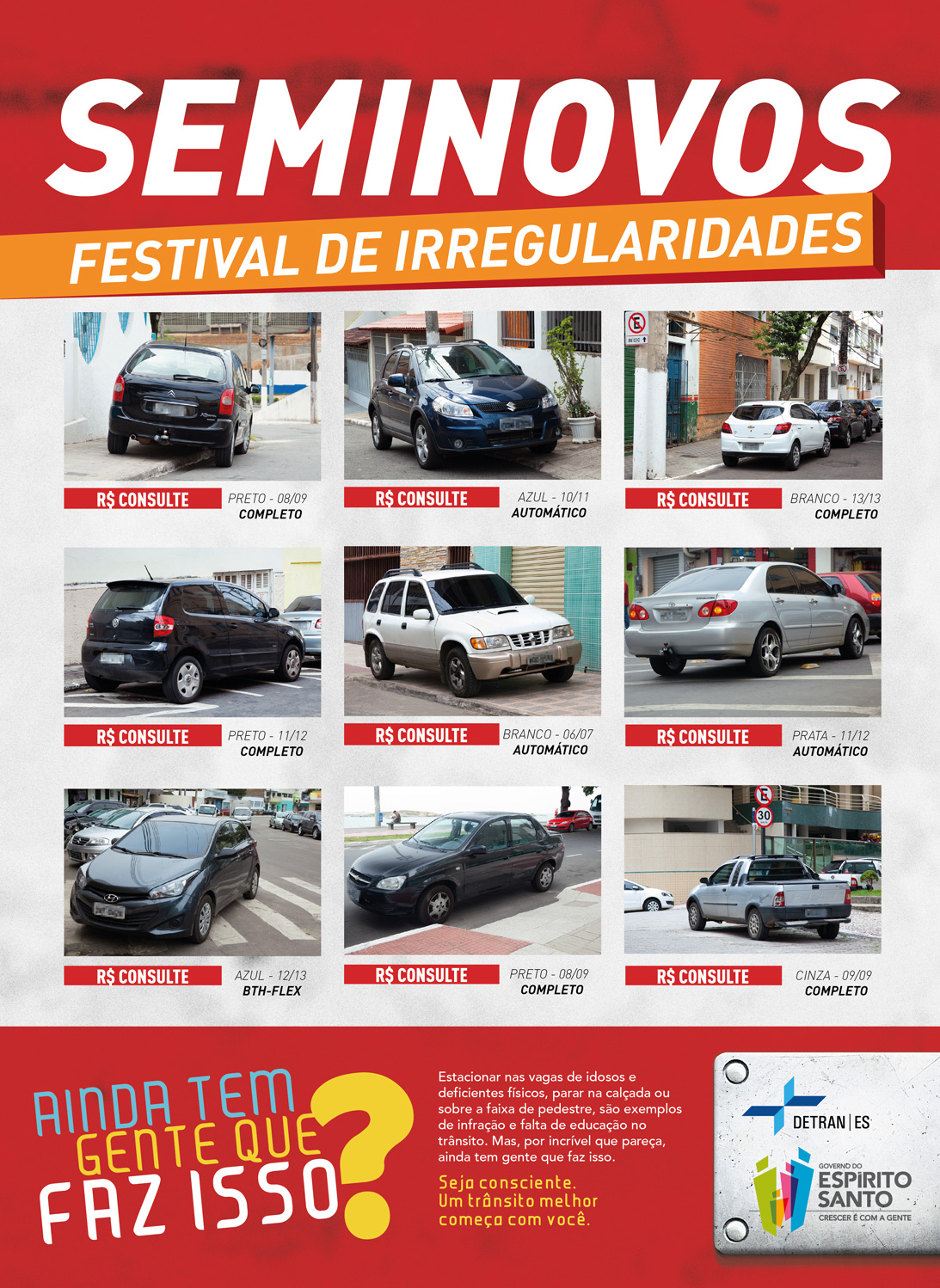 FICHA TÉCNICA: Direção de Criação: André Muhle. Redação: Silvia Zanotti. Direção de Arte: Kamila Lovo. Mídia: Grazi Fiorese e Andi Nascimento. Atendimento: Marla Oliveira e Felipe Guimarães. Aprovação: Detran ES e Secom. |