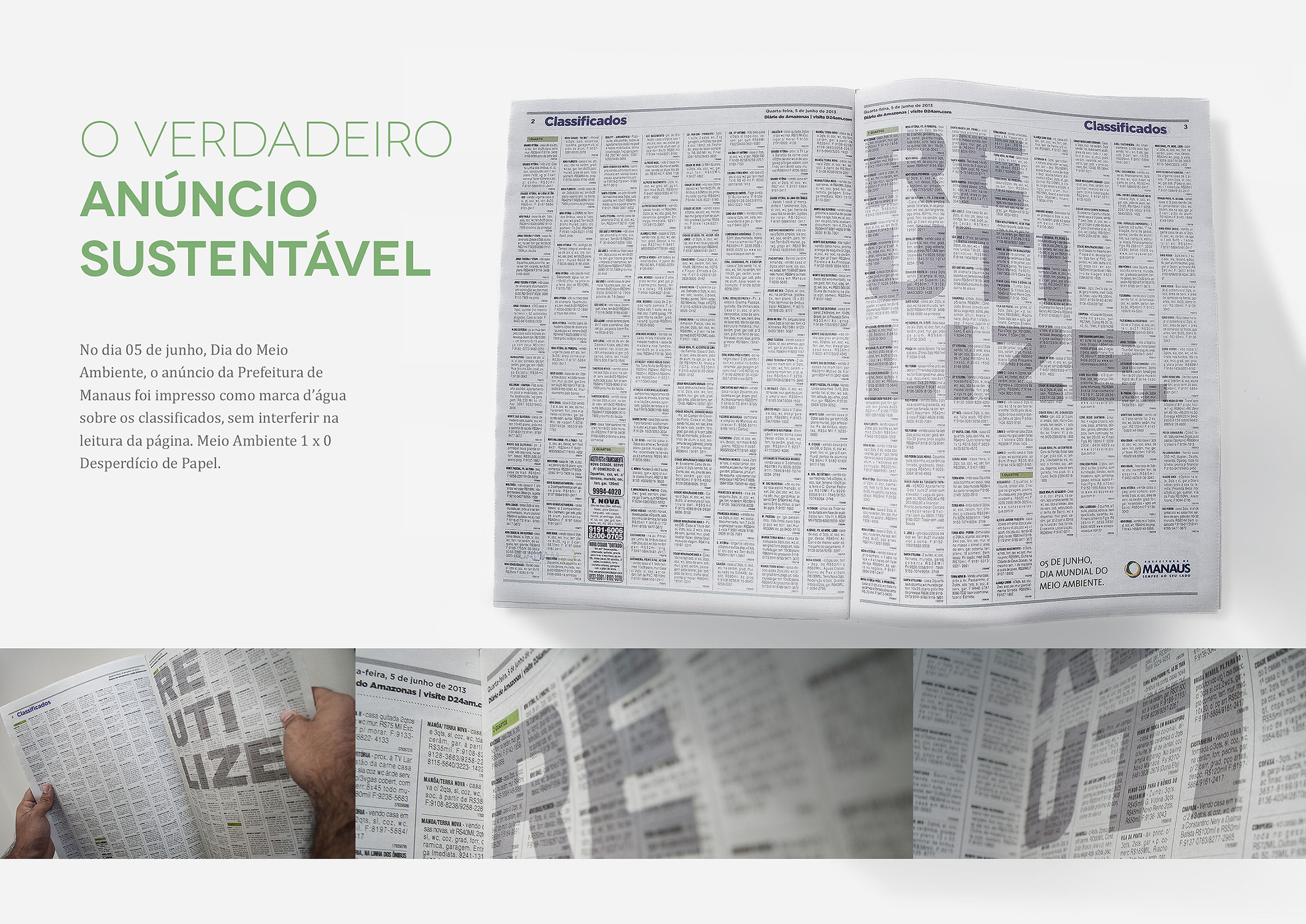 "O Verdadeiro Anúncio Sustentável", da MENE & MONEY para Prefeitura de Manaus.