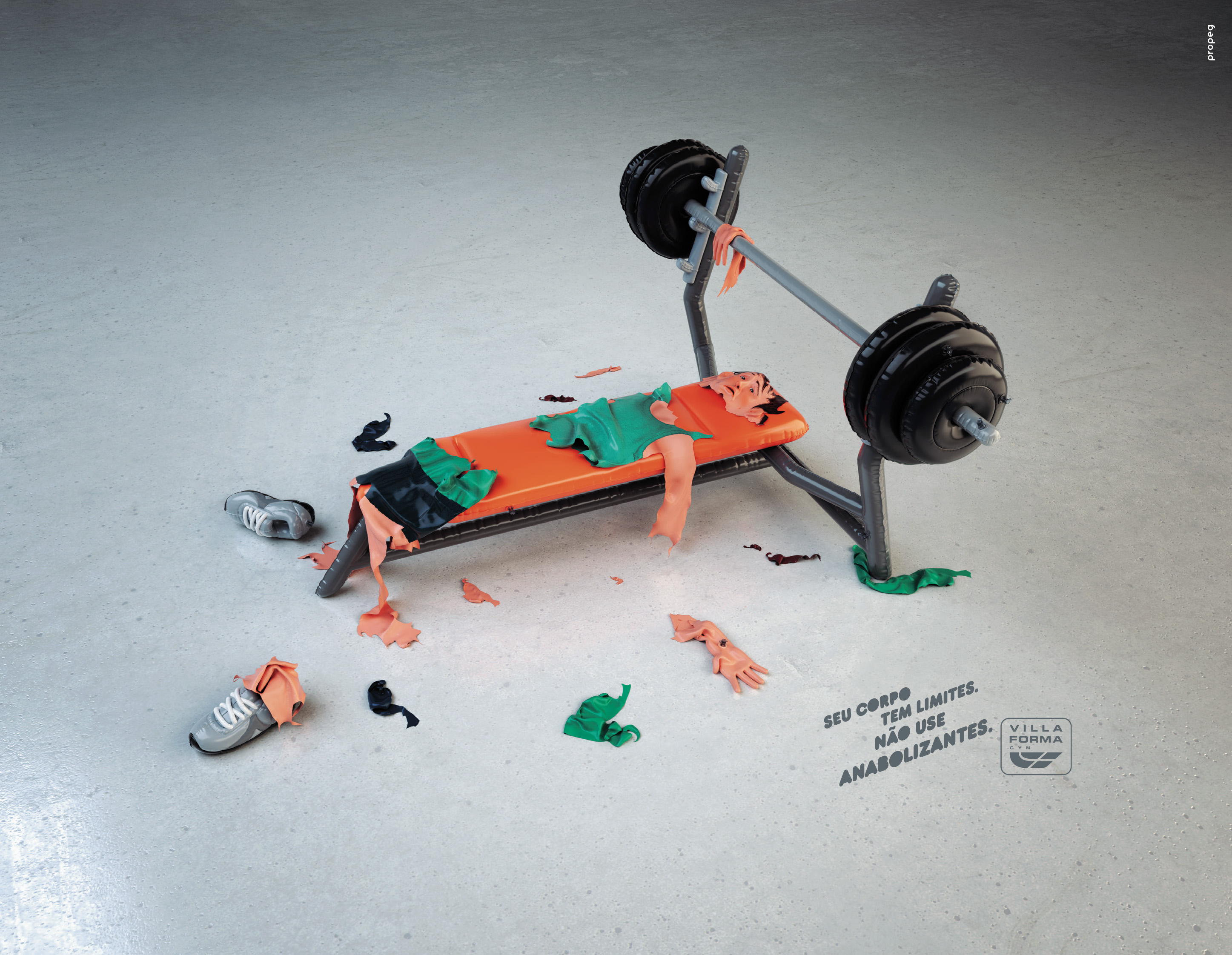 "Seu corpo tem limites. Não use anabolizantes.", da PROPEG para Scar Academia de Ginástica (Villa Forma).