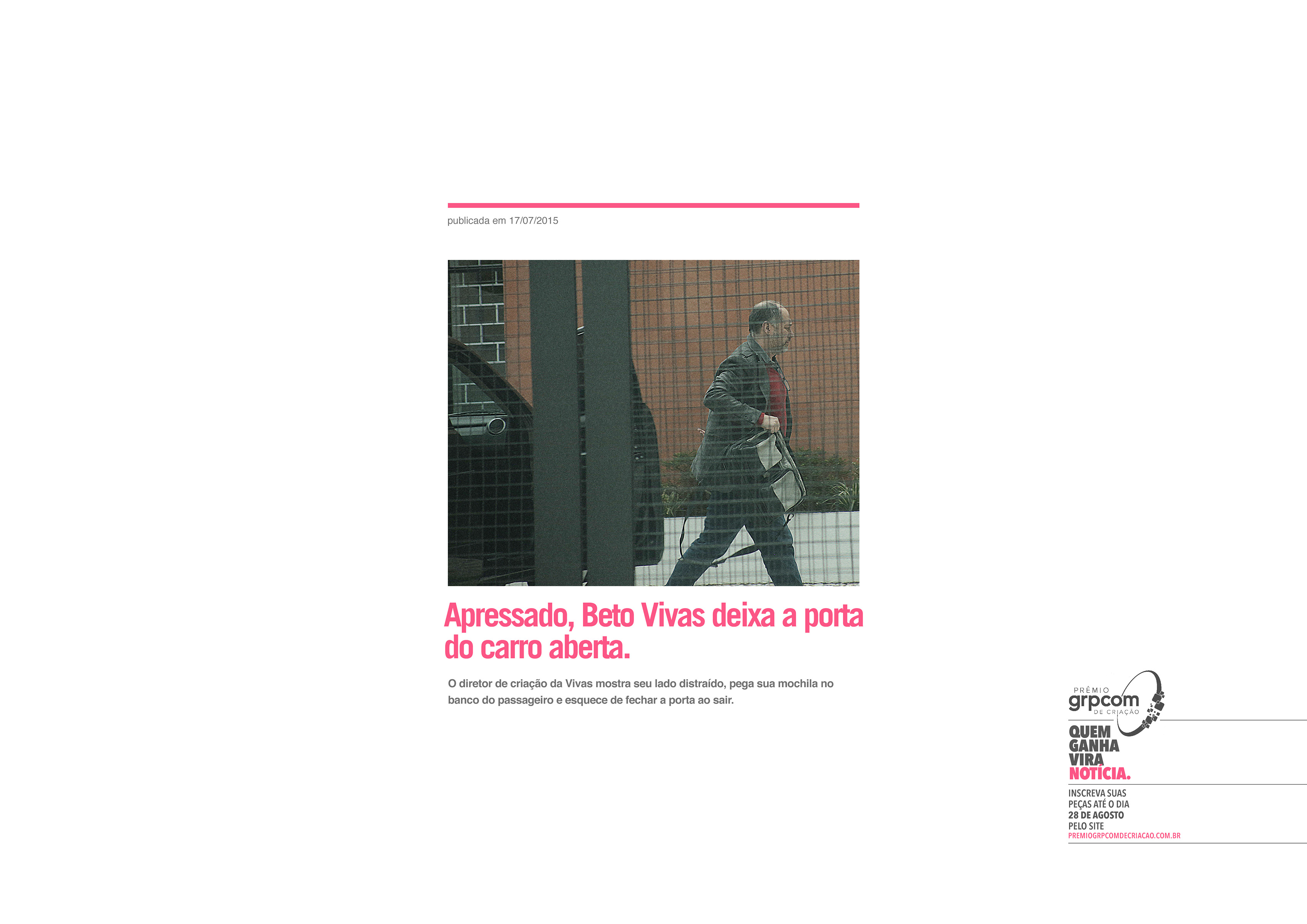 FICHA TÉCNICA: Direção de Criação: Bruno Regalo. Planejamento: Ricardo Mercer. Redação: Zé Luís Schmitz e Ricardo Mercer. Direção de Arte: Bruno Regalo e Thiago "China" Matsunaga. Produção Gráfica: Daniela Bohm. Produção de RTVC: Daniela Bohm. Mídia: Giovanna Corte. Atendimento: Eduardo Jonscher. Produtora de Filme: Loco Filmes. Direção do Filme: Bruno Siqueira. Produtora de Áudio: Canja. Fotógrafo: Paparazzi. Aprovação: Fernanda Ceccatto, Bárbara Fernandes, Carmem Murara. |