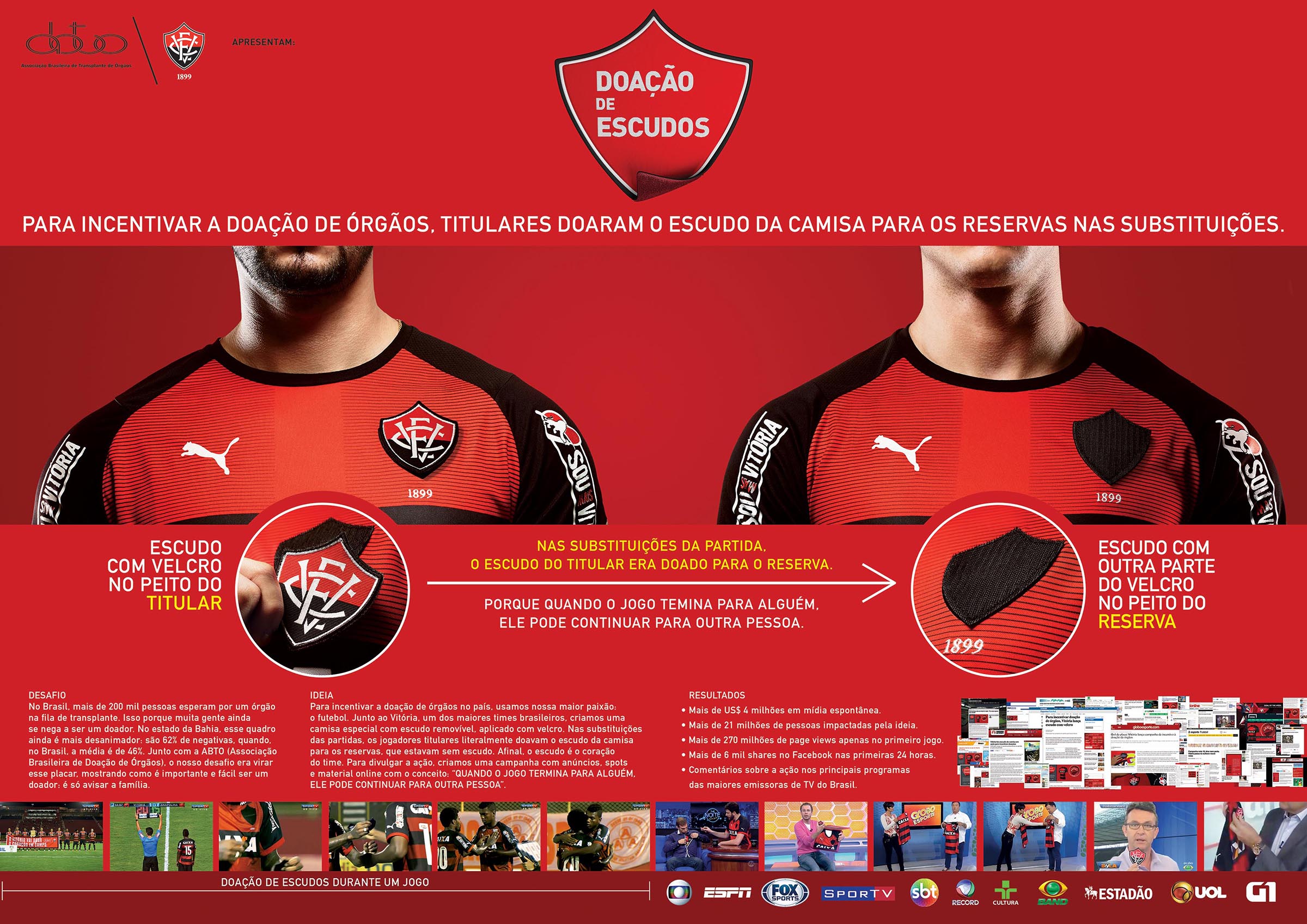 "Doação de Escudos", da LEO BURNETT TAILOR MADE para Abto - Associação Brasileira de Transplante De Órgãos.
