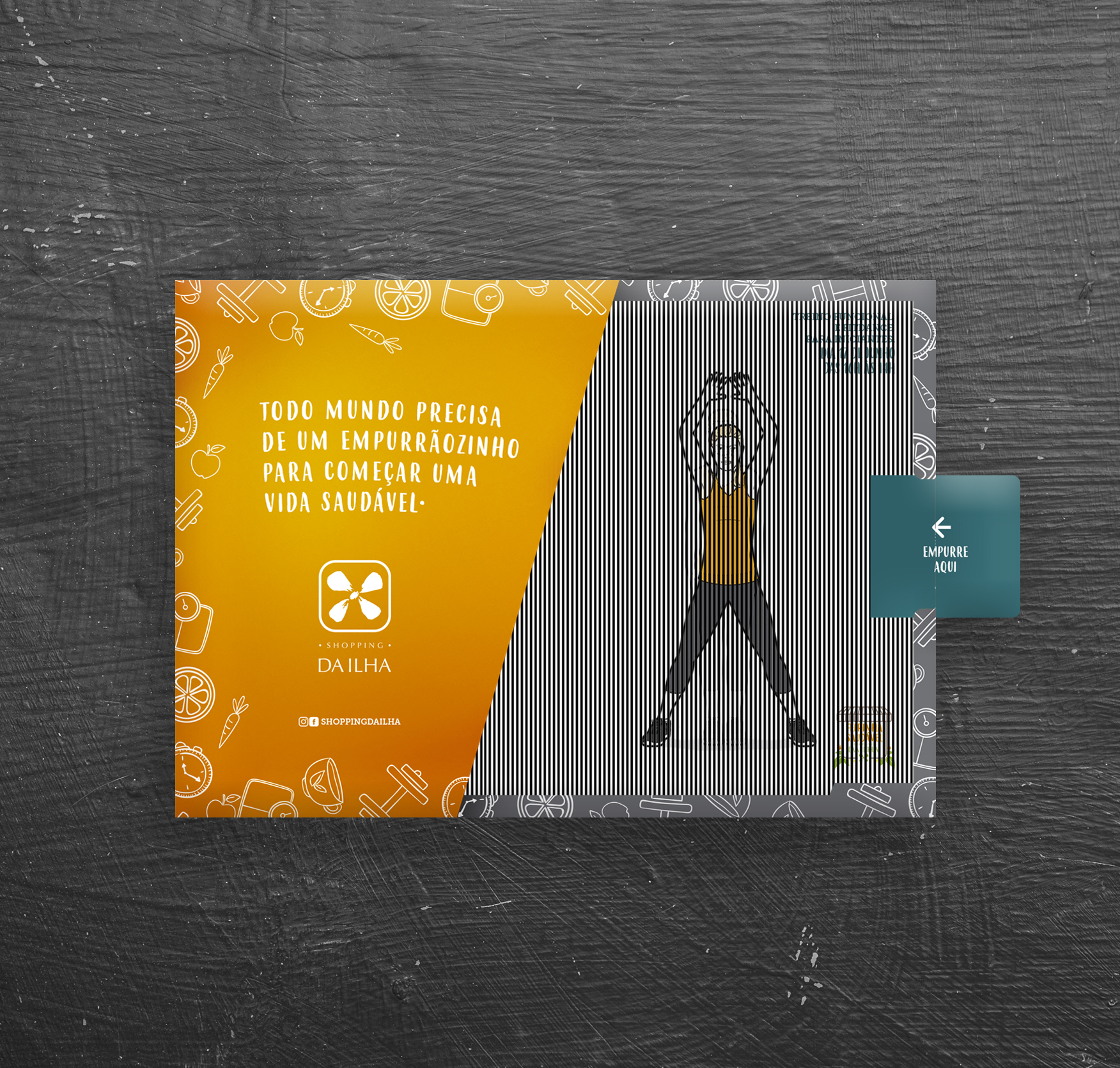 "Cartaz Empurrãozinho", da PIRUETA IDEIAS para Shopping da Ilha.