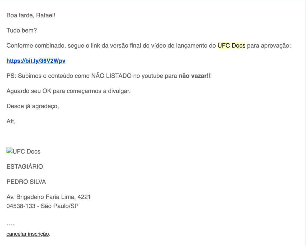 "E-Mail Fake Ufc Docs", da SKIDUN para Ufc / Plataforma Ufc Docs.