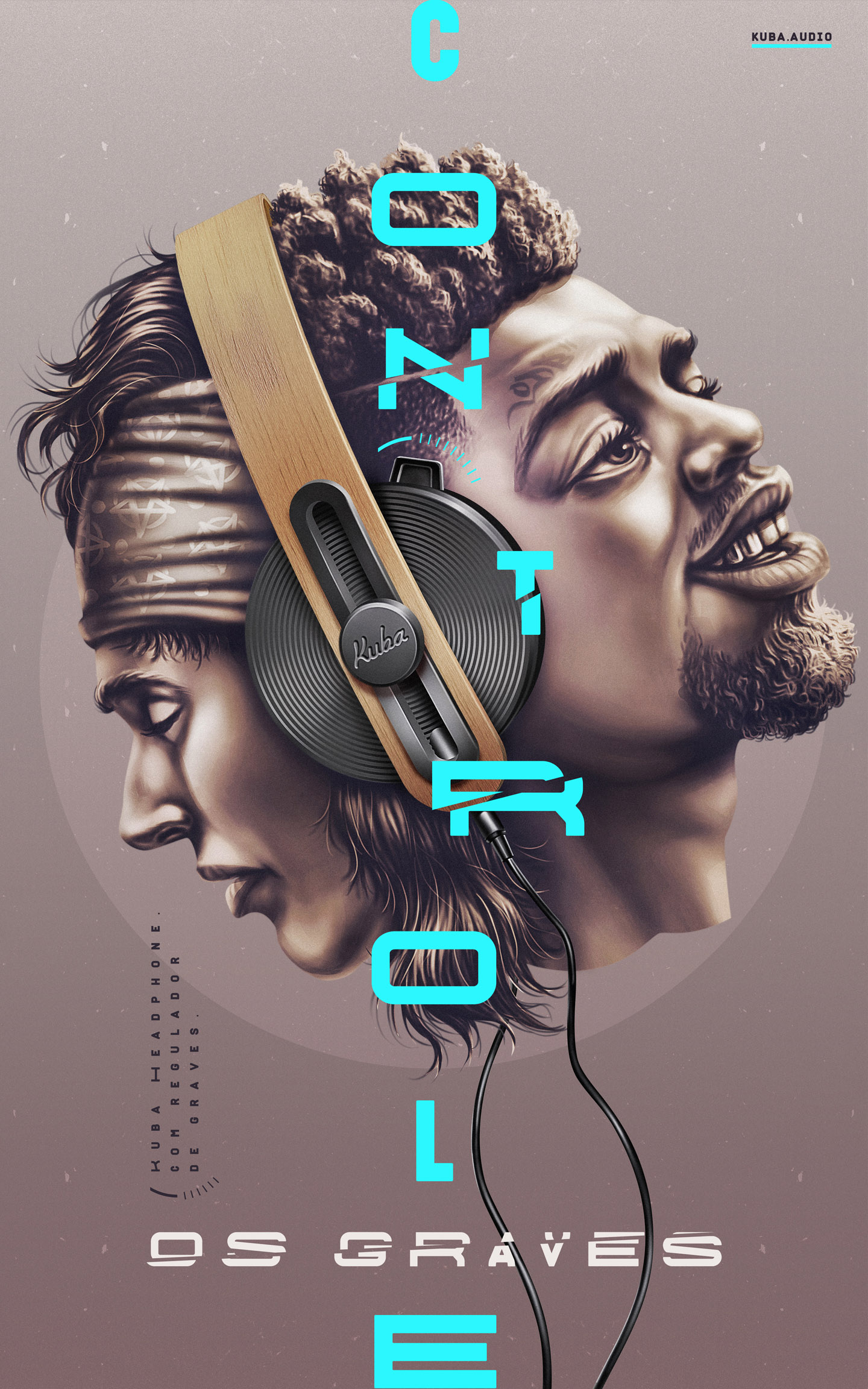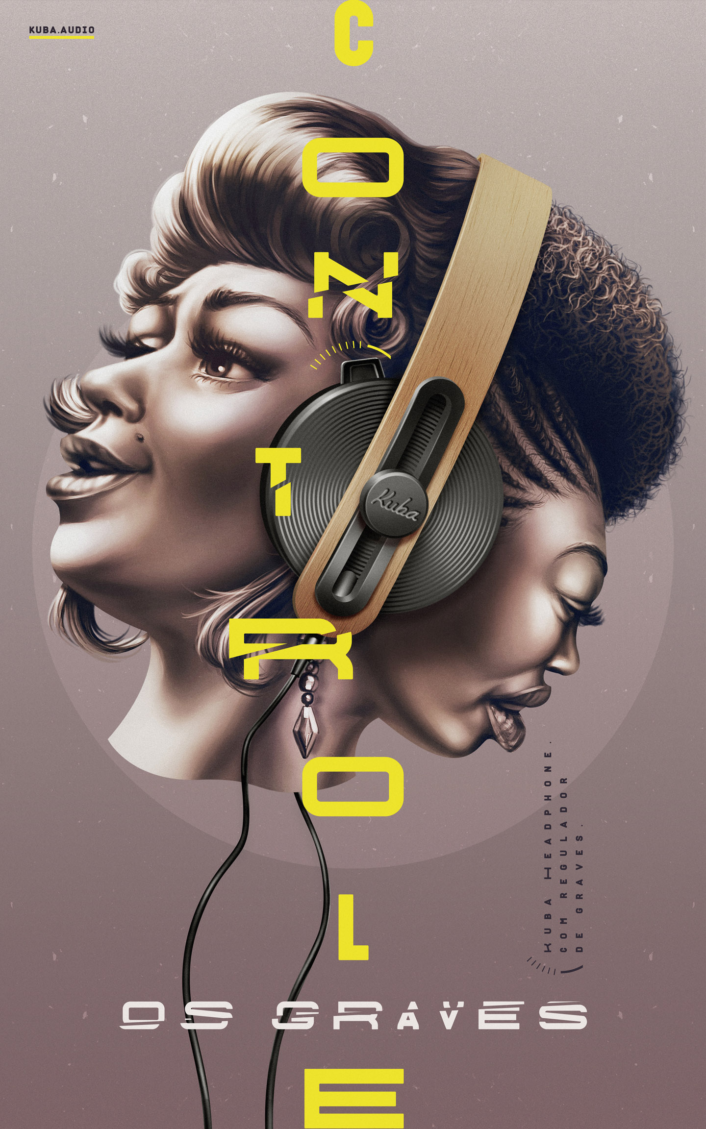 "Controle de Graves", da AGÊNCIA3 para Kuba Áudio / Headphone Kuba Disco.