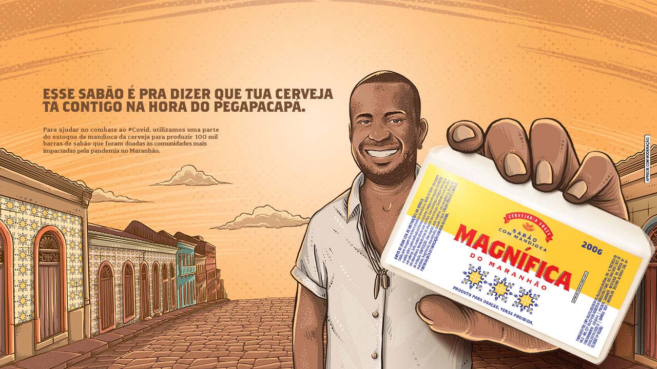Categoria: Relativa à pandemia de Covid-19 Agência: PHOCUS Ficha Técnica: Direção de Criação: Danilo Blume. Planejamento: Tiago Albuquerque. Direção de Arte: João Rabelo e Ronald Rabelo. Produção de RTVC: Anny Mota. Produção de Live Marketing: Anny Mota e David Fortes. Atendimento: Camila Lima. Estúdio de Fotografia: 9d Studio. Estúdio de Ilustração: Trampa Studio. Ilustrador: Kin Noise. Manipulação Digital: 9d Studio. Outros Créditos (Produção do Sabão): Sabão Garoto/Yob Maia - Me. Outros Créditos (Adesivos da Embalagem): B. Empreendimentos / F. E. Diniz de Sousa. Aprovação: Tiemy Schneider.