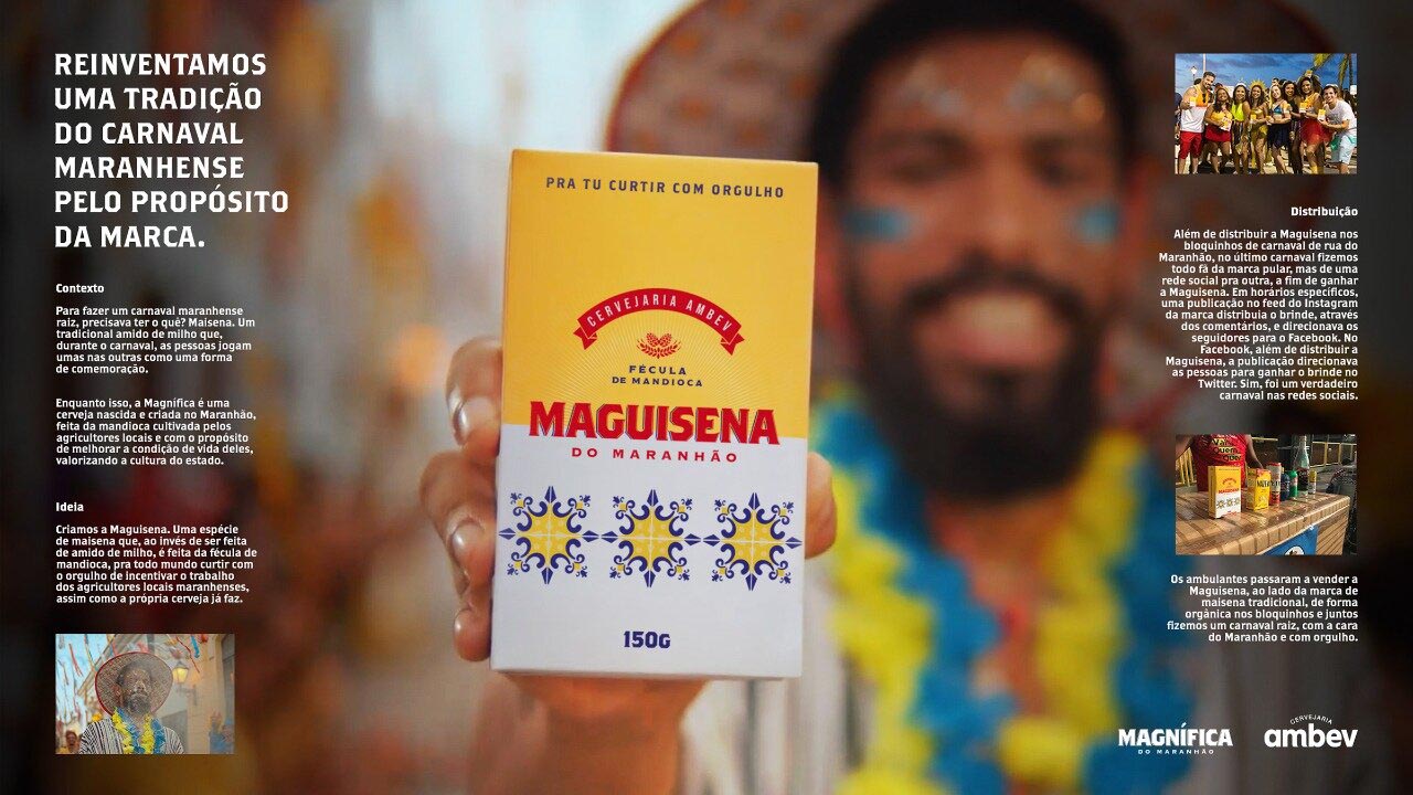 Categoria: Bebidas Alcoólicas Agência: PHOCUS Ficha Técnica: Direção de Criação: Danilo Blume. Planejamento: Tiago Albuquerque. Redação: Milena Vieira. Direção de Arte: Bruno Sousa, Moises Sousa, Nilson Junior. Produção de RTVC: Rafaela Sousa. Produção de Live Marketing: Anny Mota e David Fortes. Mídia: Vidal Neto e Fabian Silva. Atendimento: Victor Hugo. Produtora de Filme: Framme (Maguinha) 9d Studio (Making Of Maguinha No. Direção do Filme: Alexandre Rufino e José Quaresma (Maguinha) Daniel. Produtora de Áudio: César Nascimento e Sonato Studio. Direção de Áudio: César Nascimento. Finalização: Daniel Martins. Artistas: Boi de Morros, Boi De Santa Fé, Boi da Maioba, Boi De Leonardo, Boi Brilho Da Sociedade. Aprovação: Alexandre Costa, Jaqueline Barsi, Izabel Frozoni, Débora Nunes e Mariana Rech.