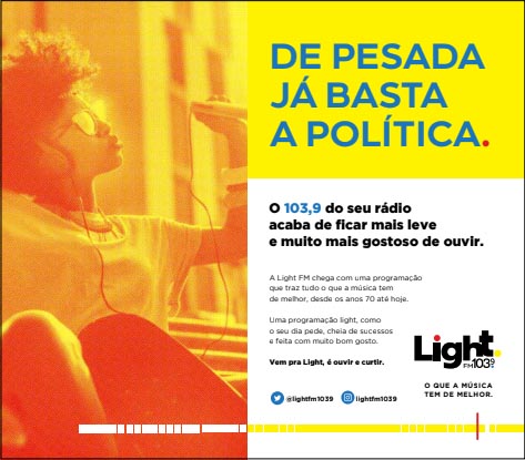 Categoria: Meios De Comunicação Agência: CASABLANCA Ficha Técnica: Direção de Criação: Maurilo Andreas. Redação: Maurilo Andreas. Arte Finalista: Celina Muniz. Mídia: Mônica Mafra. Atendimento: Juliano Sales e Sarah Serra. Aprovação: Emanuel Carneiro, Carlos Rubens Doné e Thiago Malta.