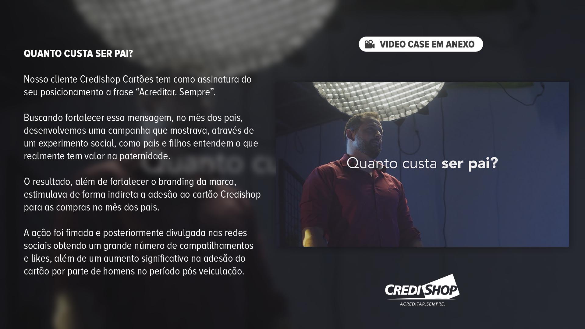 Categoria: Ação para Varejo Agência: PIRUETA IDEIAS Ficha Técnica: Direção de Criação: Edimar Filho. Planejamento: Thayza Garcia. Redação: Edimar Filho, Nonay Foraskelse, Mirela Falcão. Direção de Arte: Isaías Setúbal. Produção de RTVC: João Felippe Souza Carvalho. Mídia: Rafaela Arouche. Atendimento: Marcelle Anadom. Produtora de Filme: Sotaque Filmes. Direção do Filme: Edver Hazim. Finalização: Eliakim Souza. Aprovação: Márcio Brasil.