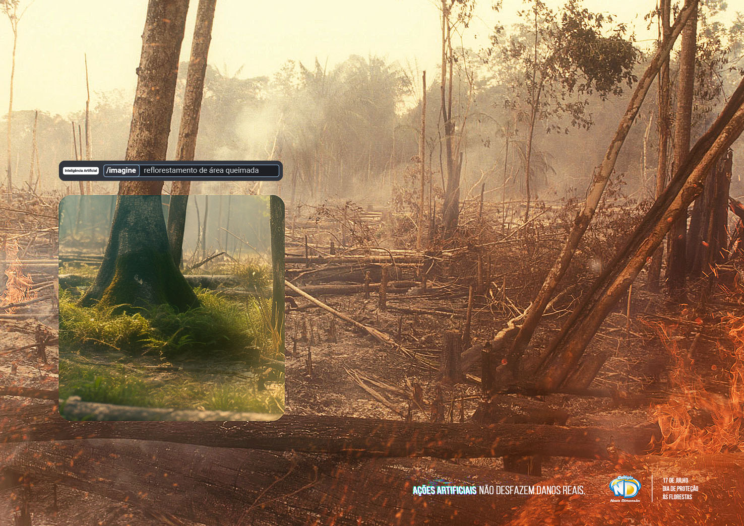 | Resumo do Desafio e da Solução: A inteligência artificial desempenha papéis essenciais, seja no atendimento automatizado, no processo de aprendizagem ou até mesmo ao dar vida às nossas criações imaginativas. Quando se trata do cuidado com o nosso planeta, é a inteligência humana que desempenha um papel fundamental.Por isso, é com grande satisfação que apresentamos nossa nova campanha, especialmente pensada para o Dia de Proteção às Florestas. |