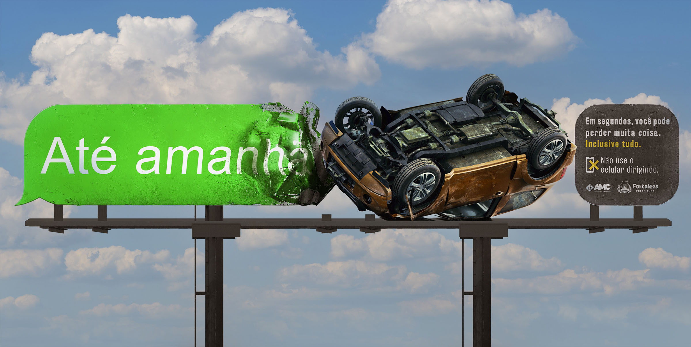 | Resumo do Desafio e da Solução: ??Campanha criada para conscientizar a população sobre os perigos de usar o celular ao volante, com o apelo de um dado que indica que o uso do celular mata tanto quanto o álcool, que já é um dos motivos mais associados aos acidentes de trânsito. |