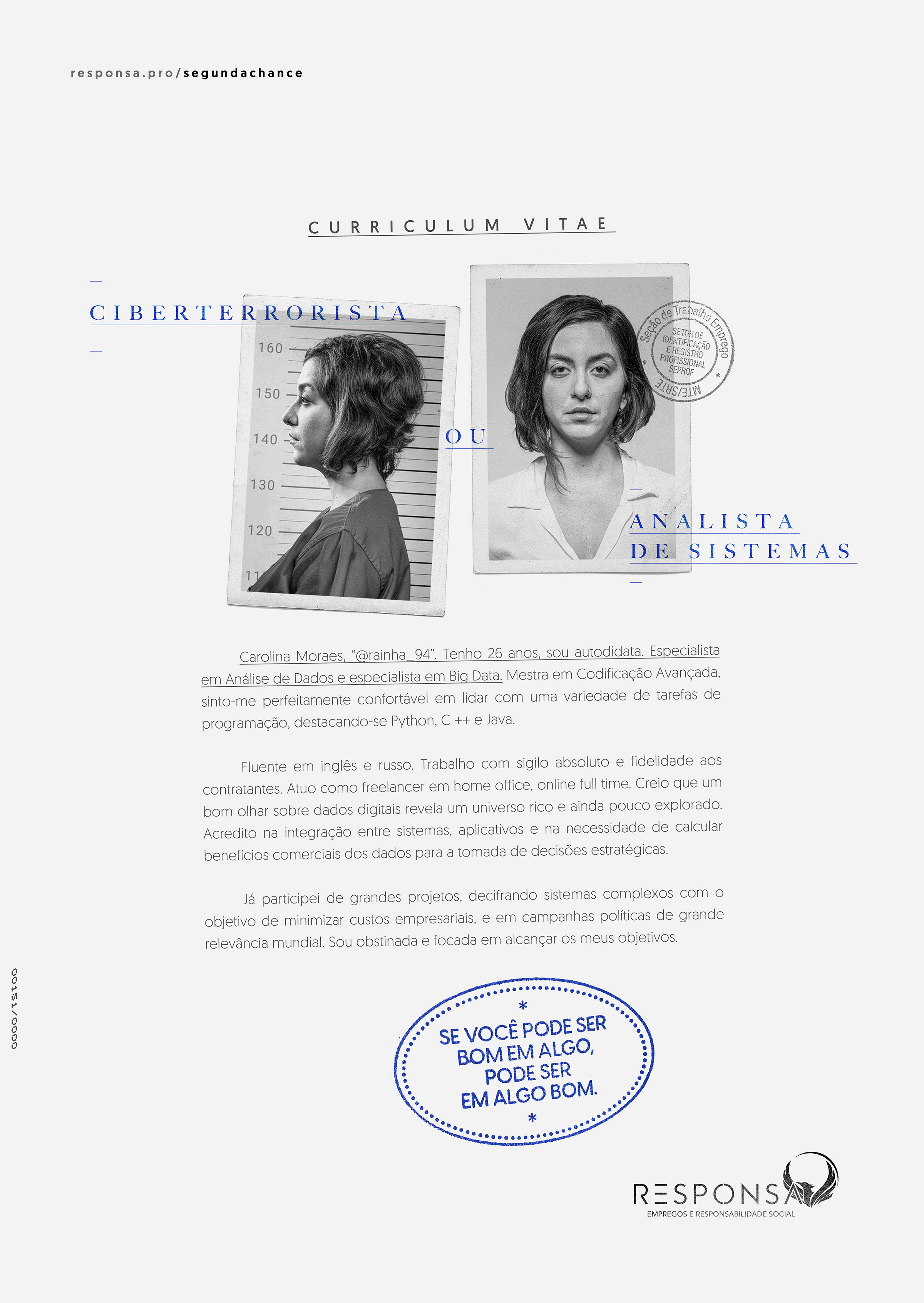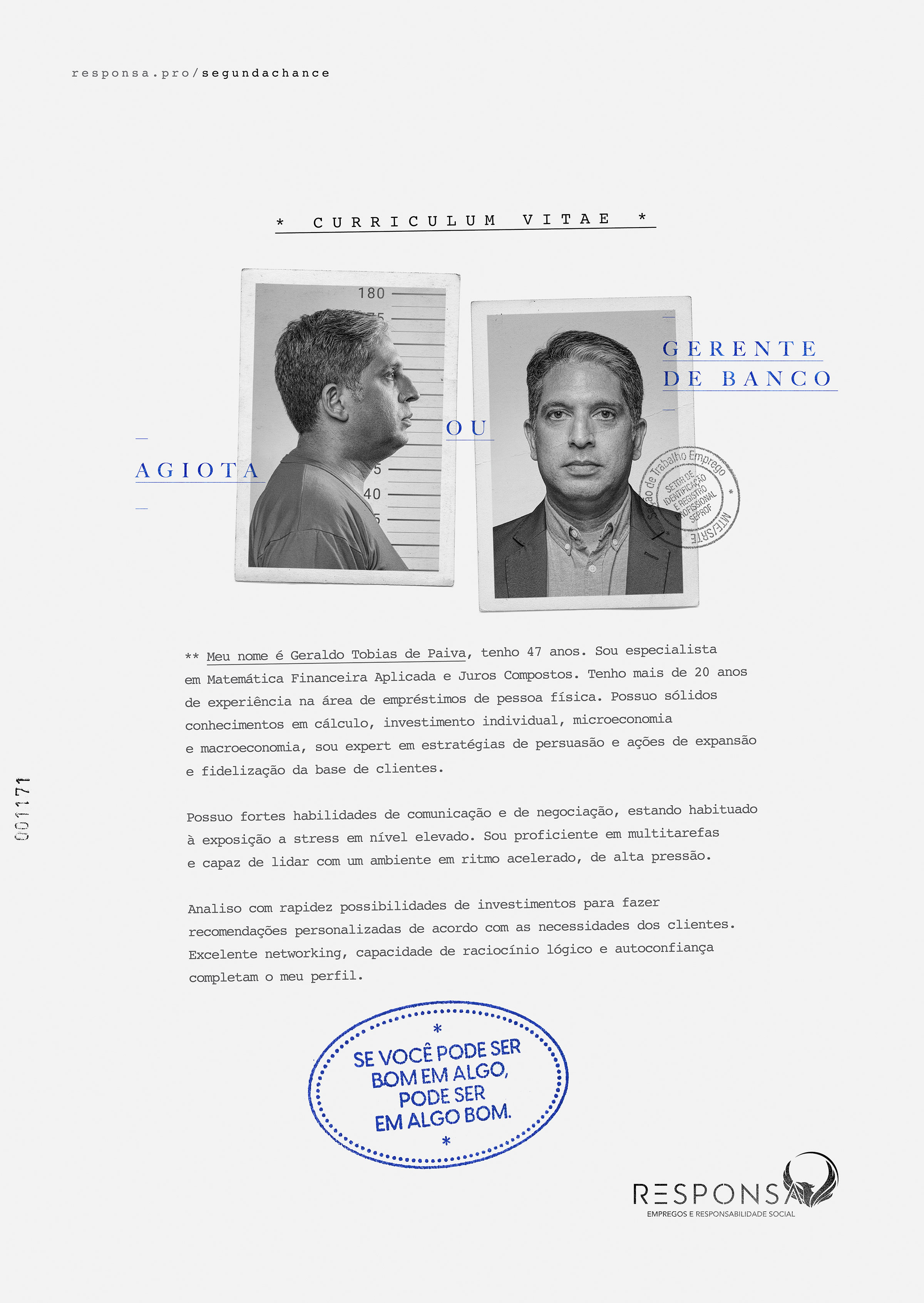 Categoria: Direção de Arte em Peça Gráfica Agência: PROPEG Ficha Técnica: Direção de Criação: Emerson Braga. Planejamento: Melina Romariz, Bárbara Ferreira. Redação: Emerson Braga. Direção de Arte: Vinicius Salla, Kenny Maicon, Cátia Moraes, Ivo Adams. Produção Gráfica: André Coni. Produção de RTVC: André Coni. Ceo Vítor Barros. Cco Emerson Braga. Mídia: Patrícia Seabra. Atendimento: Michele Estevez. Produtora de Filme: Estúdio Dodô Villar. Direção do Filme: Dodô Villar. Produtora de Áudio: Lógico. Direção de Áudio: Milton Miné. Estúdio de Fotografia: Estúdio Dodô Villar. Fotógrafo: Dodô Villar. Aprovação: Emílio Salomão Resedá - Desembargador. |