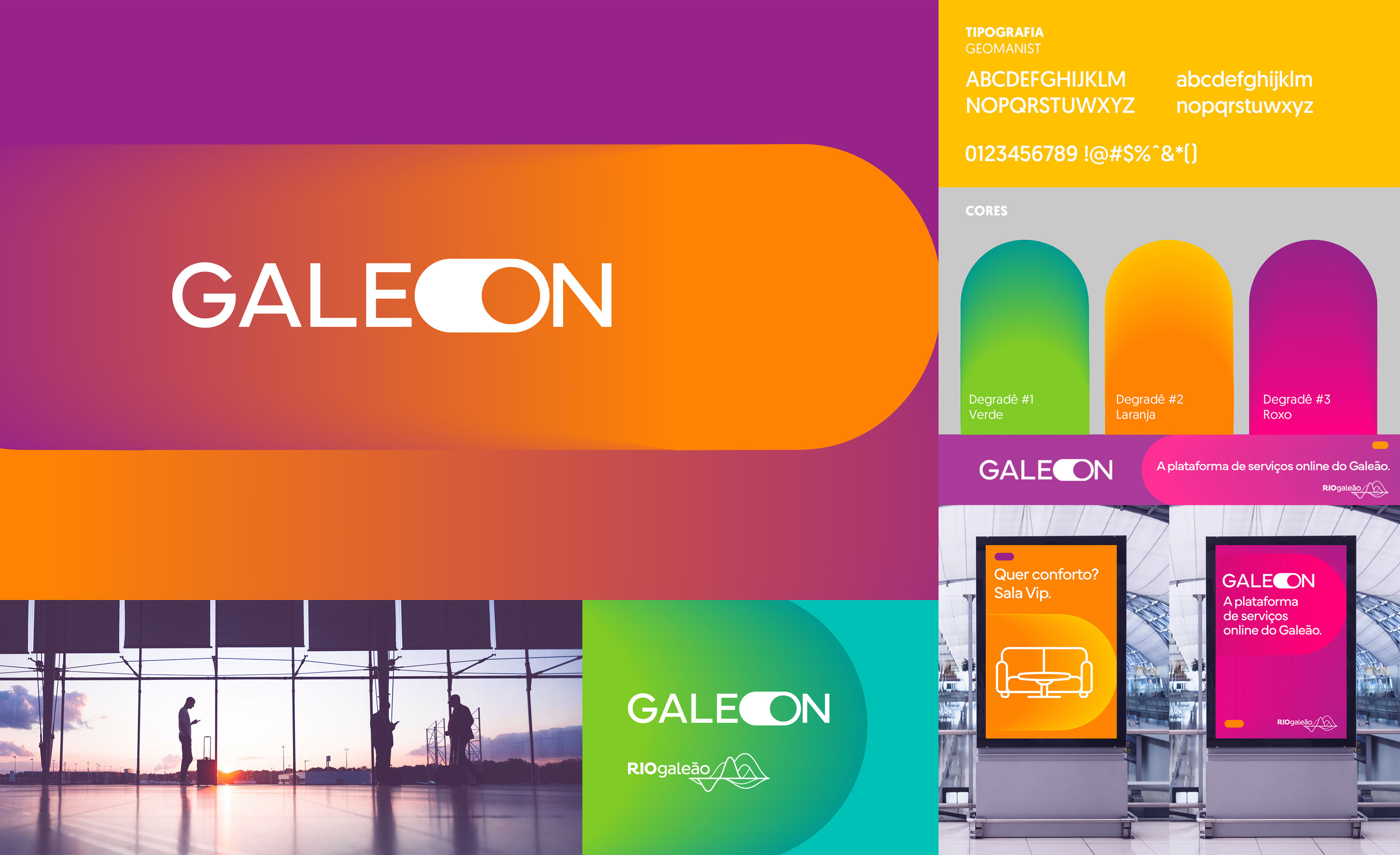 | Resumo do Desafio e da Solução: Projeto de design para o lançamento da nova plataforma de serviços on-line do RIOgaleão. Uma plataforma onde você pode agendar serviços como salas VIP, taxi, estacionamento e até pedir delivery dentro do aeroporto. A plataforma precisava ter uma identidade própria, digital e de fácil entendimento. um nome proprietário, que trouxesse o recall do aeroporto. |
