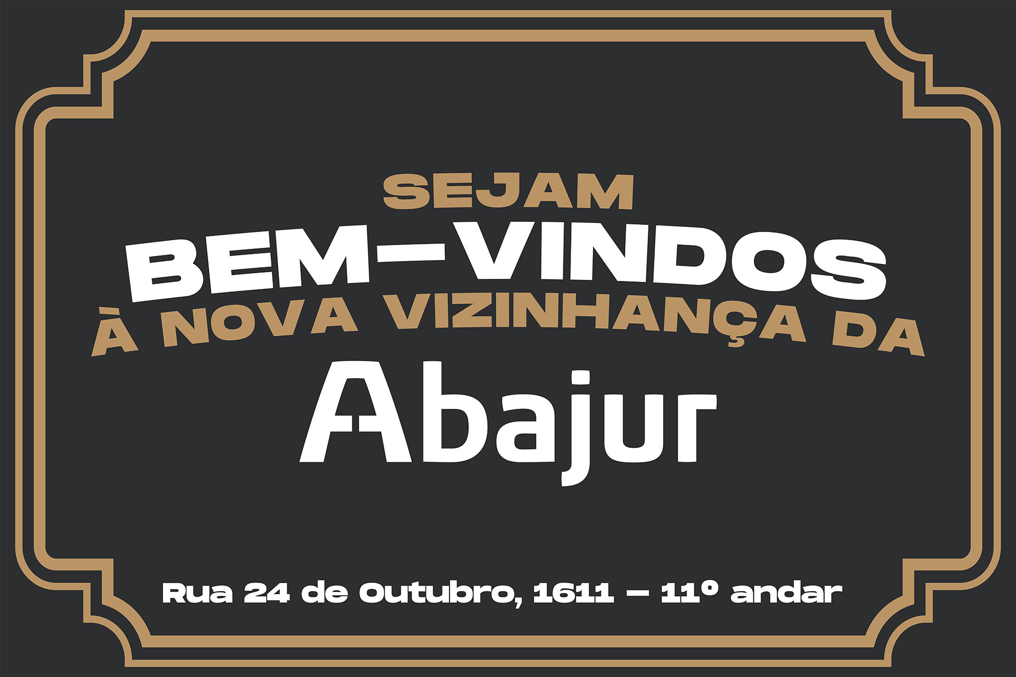 | Resumo do Desafio e da Solução: Para comunicar a mudança de endereço, a Abajur apresentou peças de OOH feitas de capacho. As bancas com o endereço da nova sede, desejou boas-vindas aos que passaram pela vizinhança. |