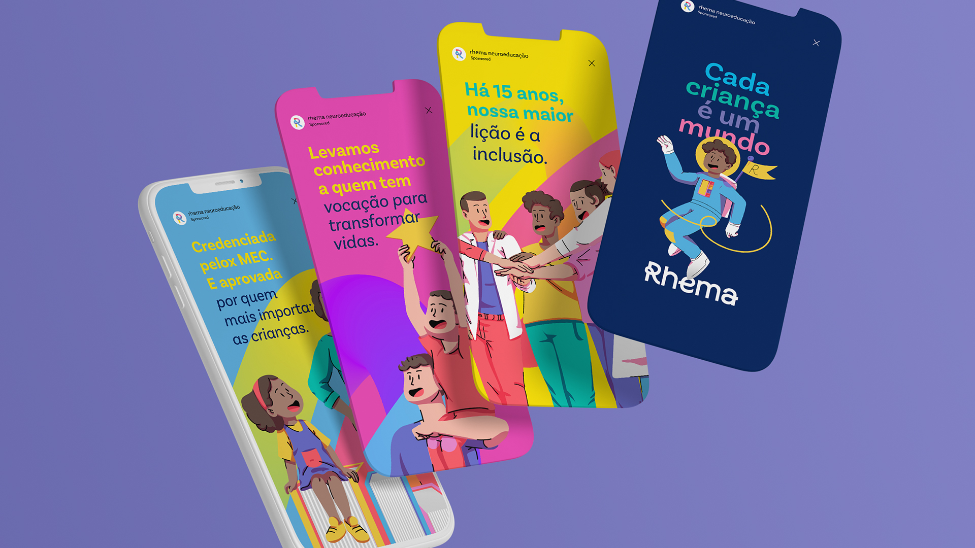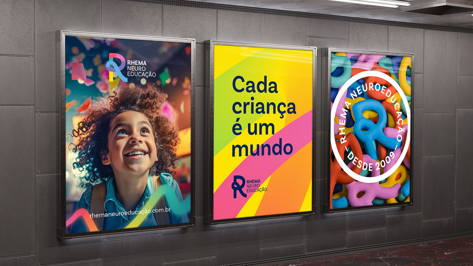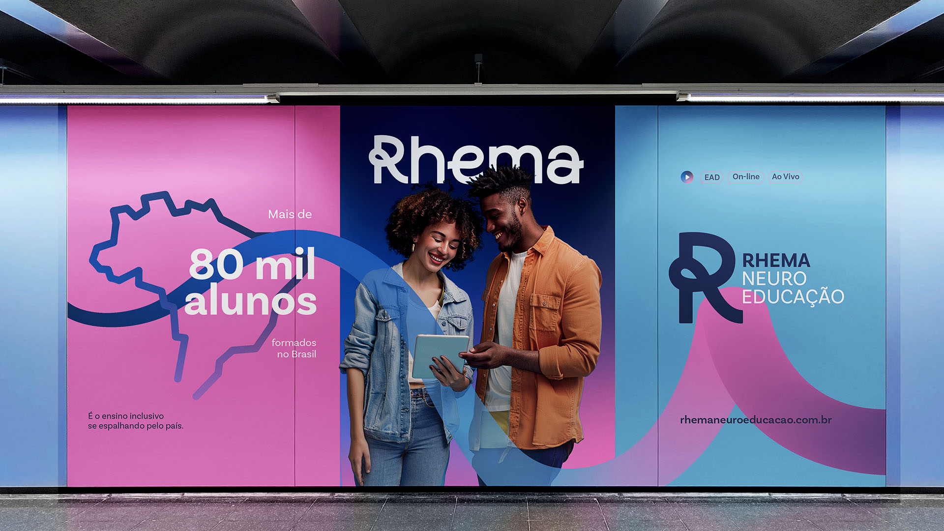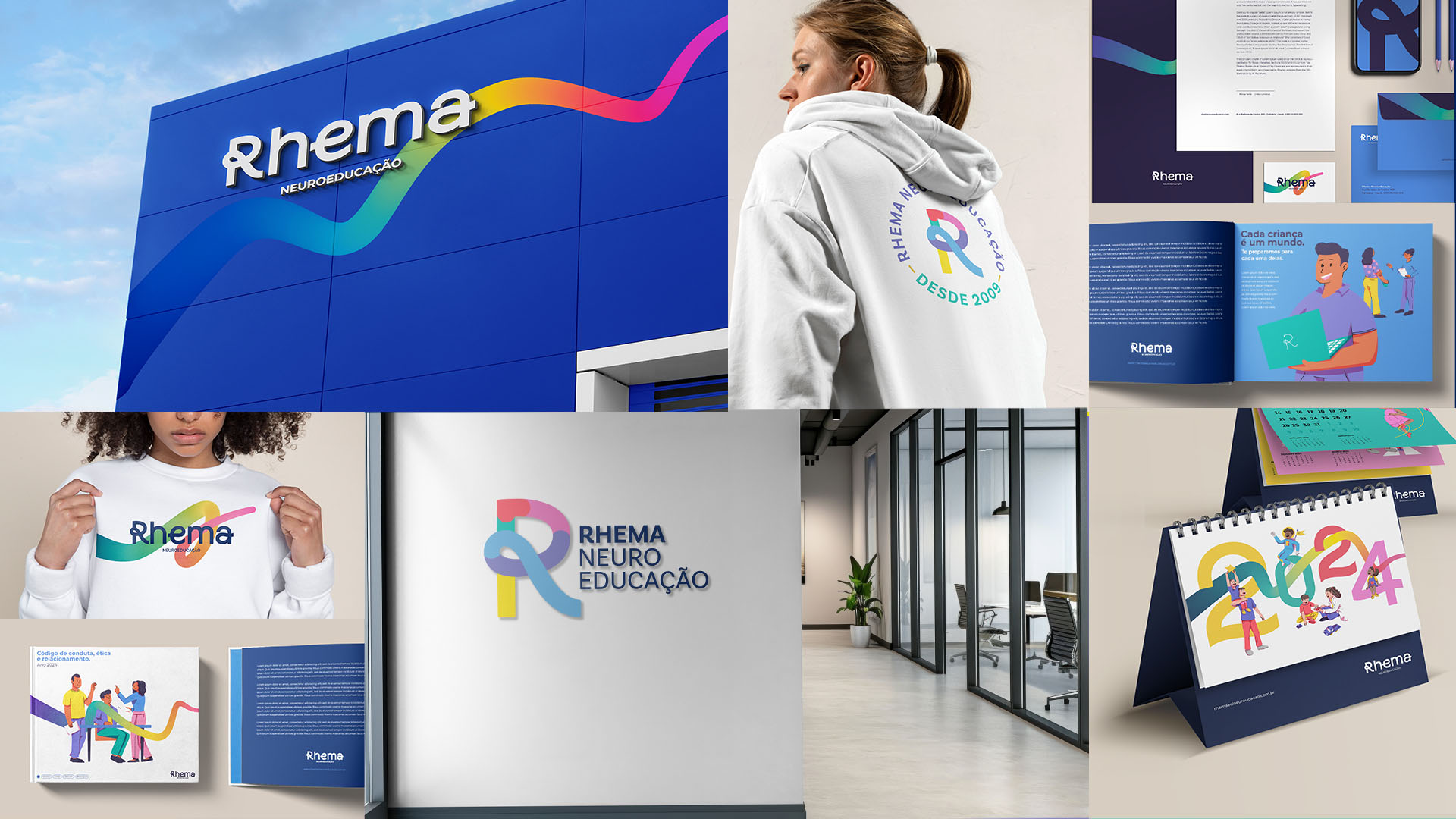 | Resumo do Desafio e da Solução: Rhema é uma instituição Pós-Graduação para educadores que trabalham com crianças neurodivergentes. A empresa precisava se posicionar de forma mais clara, e ressaltar sua autoridade. A solução foi fazer um rebranding completo. Criamos o conceito: Cada criança é um mundo. Te preparamos para cada uma delas; acrescentamos um decodificador para deixar claro o core da empresa: Rhema Neuroeducação; e criamos um novo branding, da logomarca ao tom de voz. |
