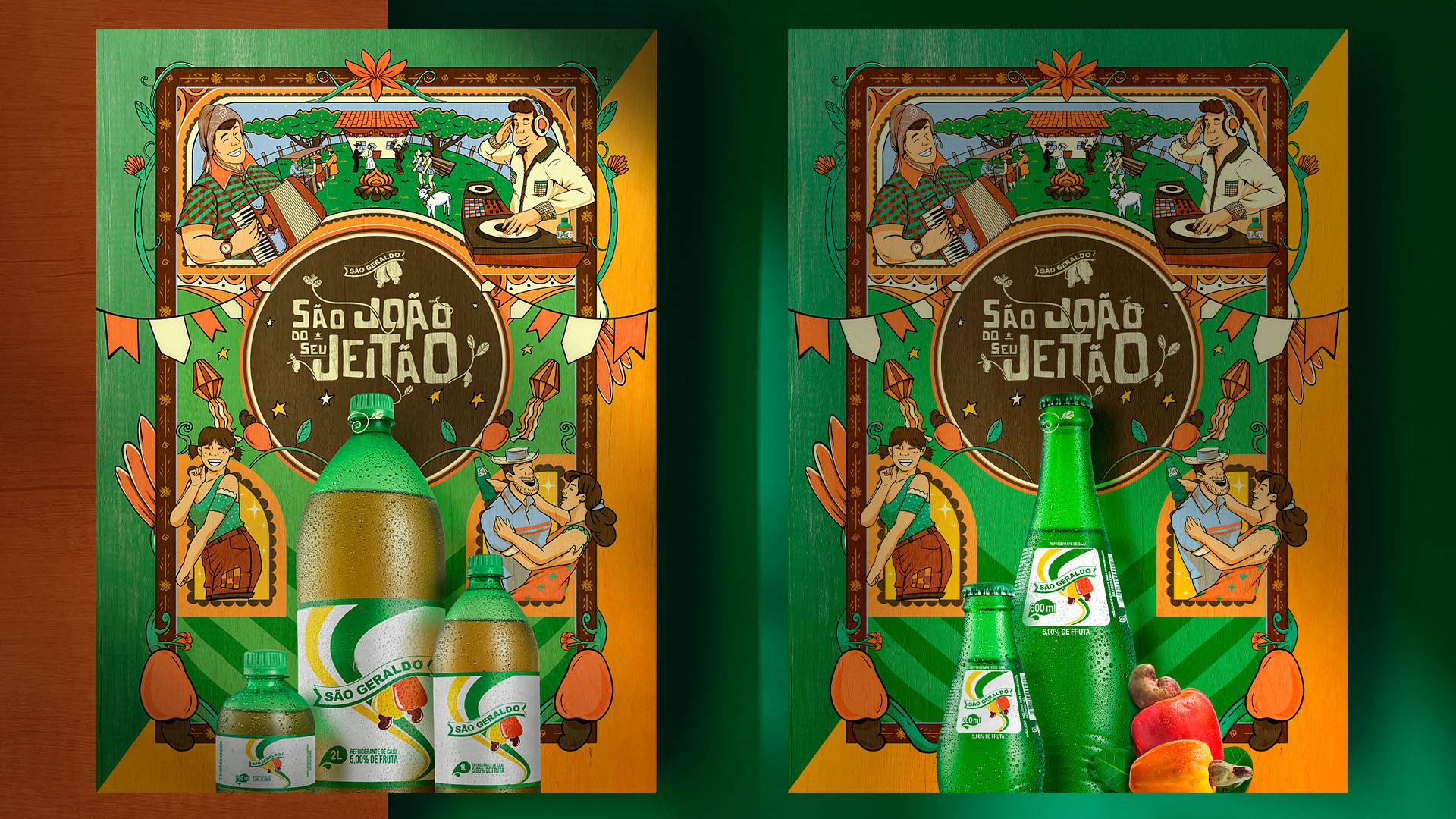 | Resumo do Desafio e da Solução: O São João é uma festa tipicamente nordestina. E a São Geraldo, o refrigerante de caju mais amado da região, não poderia ficar de fora. Decidimos nos apropriar dessa data significativa, reconhecendo a convivência entre diferentes formas de comportamento: os tradicionais e os novos modismos. Criamos um "São João do seu jeitão", mostrando que a mistura do novo com o tradicional torna tudo mais divertido. |